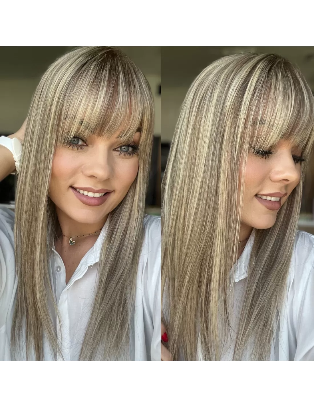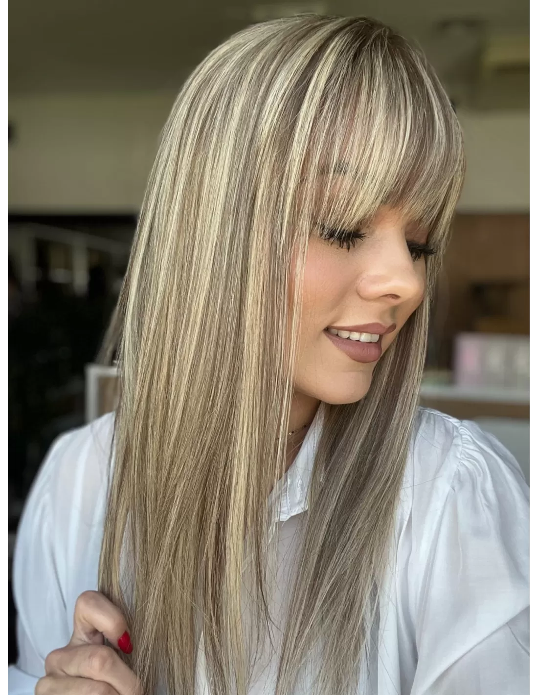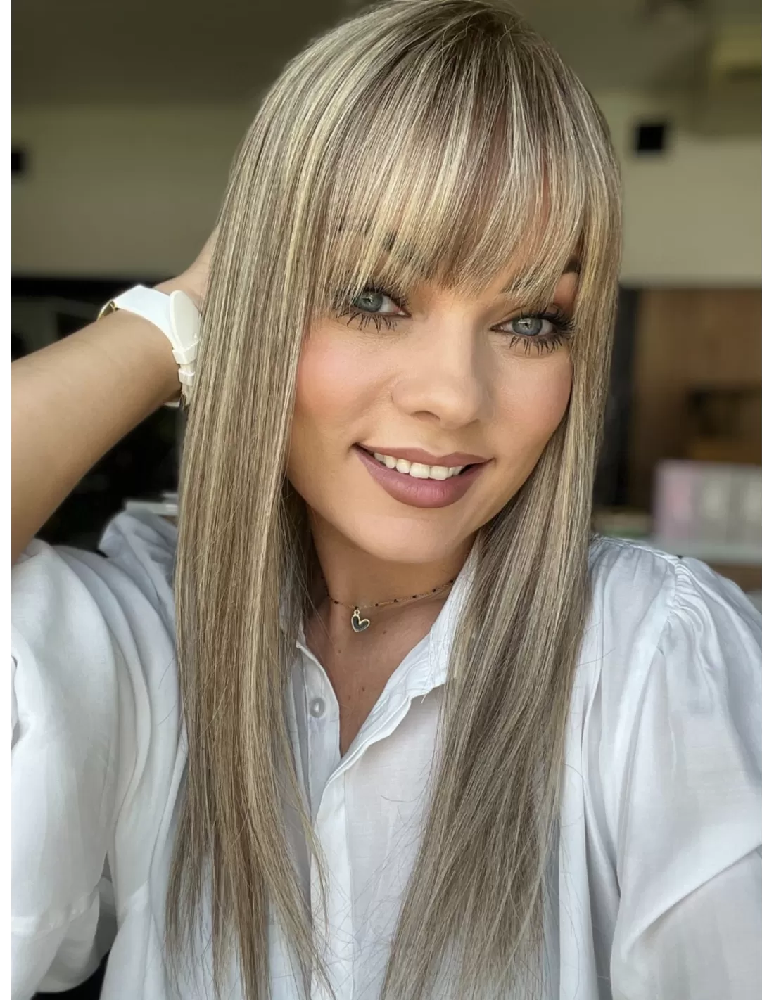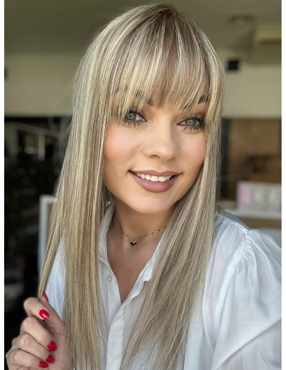 Topper Selene 8C to arcydzieło najwyższej jakości, stworzone z naturalnych włosów, które wprowadzą do Twojej stylizacji nowy wymiar elegancji. Kolorystyka to baleyage blond w chłodnym odcieniu, co nadaje włosom delikatny i naturalny blask. Odrost w kolorze ciemnego chłodnego blondu dodaje fryzurze kontrastu i charakteru.